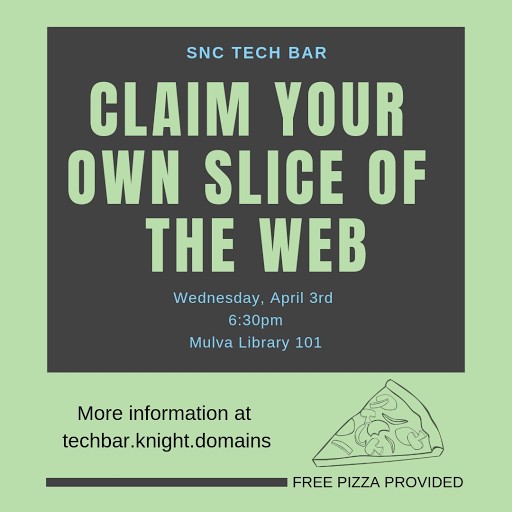 I’m really proud of the work our Tech Bar students have been doing promoting their next event on campus called “Claim Your Own Slice of the Web.” Yes, the pun is intended.